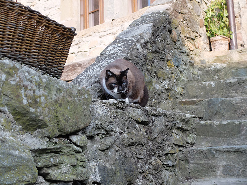 แมวตัวหนึ่งเดินอยู่บนหลังคา พอเห็นเรากวักมือเรียกก็ค่อยๆ เยื้องย่างลงมานอนขดอยู่ตรงบันไดหินให้ถ่ายรูปได้ง่ายๆ เหมือนจะกำลังบอกเราว่า “คราวหน้าแวะมาใหม่นะ” ฉันกดรูปไว้แชะสองแชะแล้วพูด Au revoir กับมัน ก่อนที่สัญญาณจากเรือจะดังขึ้นเพื่อเรียกเรากลับไป