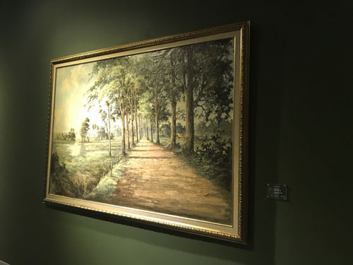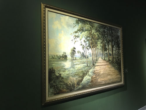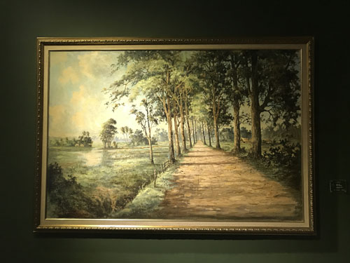 ภาพวาดชิ้นนึงที่เราชอบมากใน The Presidential’s Palace Painting’s Collection ชื่อภาพ “Jalan Di Tepi Sawah” ของ S. Soejono Ds เป็นภาพทางเดินในป่า ที่เล่นกับมุมมอง (perspective) ได้น่าสนใจ เทคนิคเดียวกับภาพวาดโมนาลิซา นั่นก็คือ ไม่ว่าเราจะยืนมองจากมุมไหน ซ้าย ขวา หรือตรงกลาง เราจะรู้สึกเหมือนกับว่าทางเดินนั้นเริ่มต้นปูทิศทางจากจุดที่เรายืนอยู่